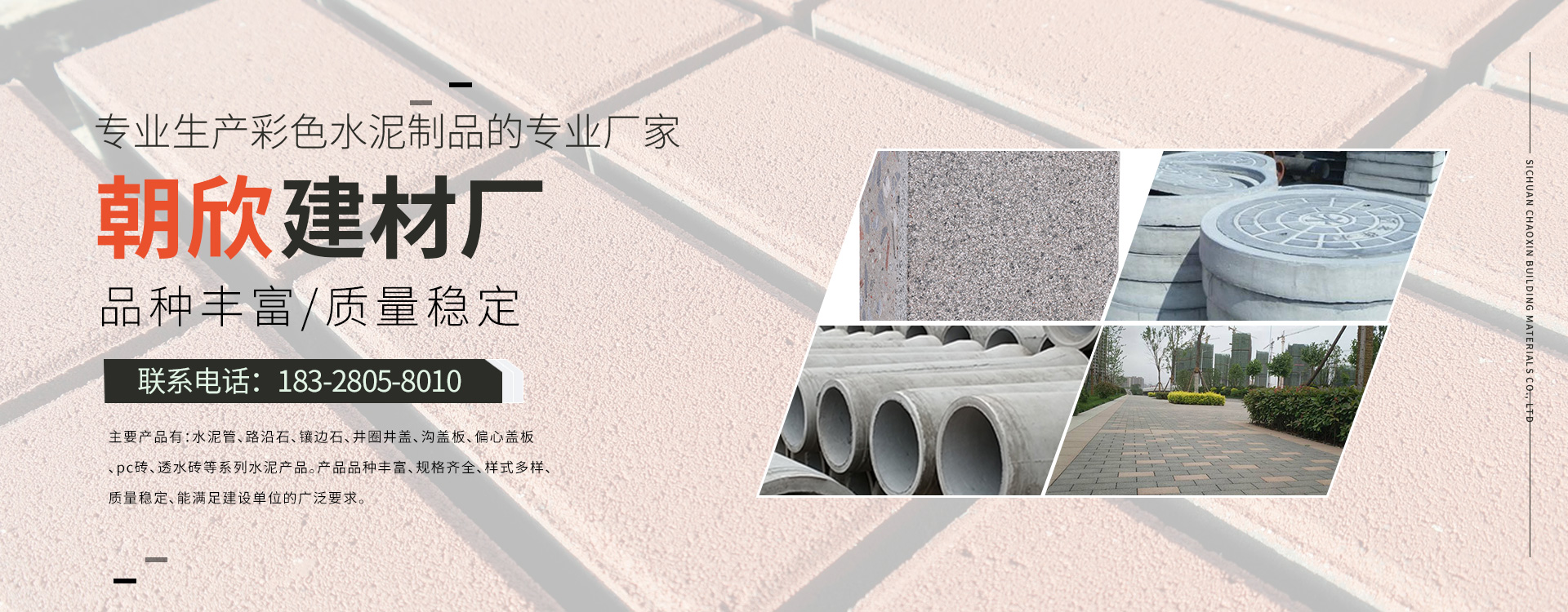四川朝欣建材有限公司是一家專(zhuān)業(yè)生產(chǎn)彩色水泥制品的專(zhuān)業(yè)廠(chǎng)家, 自成立以來(lái),專(zhuān)業(yè)生產(chǎn)各種水泥制品,廠(chǎng)址位于:四川省成都市新都區(qū)新繁街道錦源村7社48號(hào)(朝欣建材廠(chǎng)),廠(chǎng)區(qū)占地面積30余畝,各類(lèi)生產(chǎn)設(shè)備30余臺(tái)(套),專(zhuān)業(yè)工程技術(shù)人員十余人,熟練生產(chǎn)工人50余人。 本廠(chǎng)擁有雄厚的研發(fā)實(shí)力及生產(chǎn)能力,主要產(chǎn)品有:水泥管、路沿石、鑲邊石、井圈井蓋、溝蓋板、偏心蓋板、pc磚、透水磚等系列水泥產(chǎn)品。產(chǎn)品品種豐富、規(guī)格齊全、樣式多樣、質(zhì)量穩(wěn)定、能滿(mǎn)足建設(shè)單位的廣泛要求。 ...